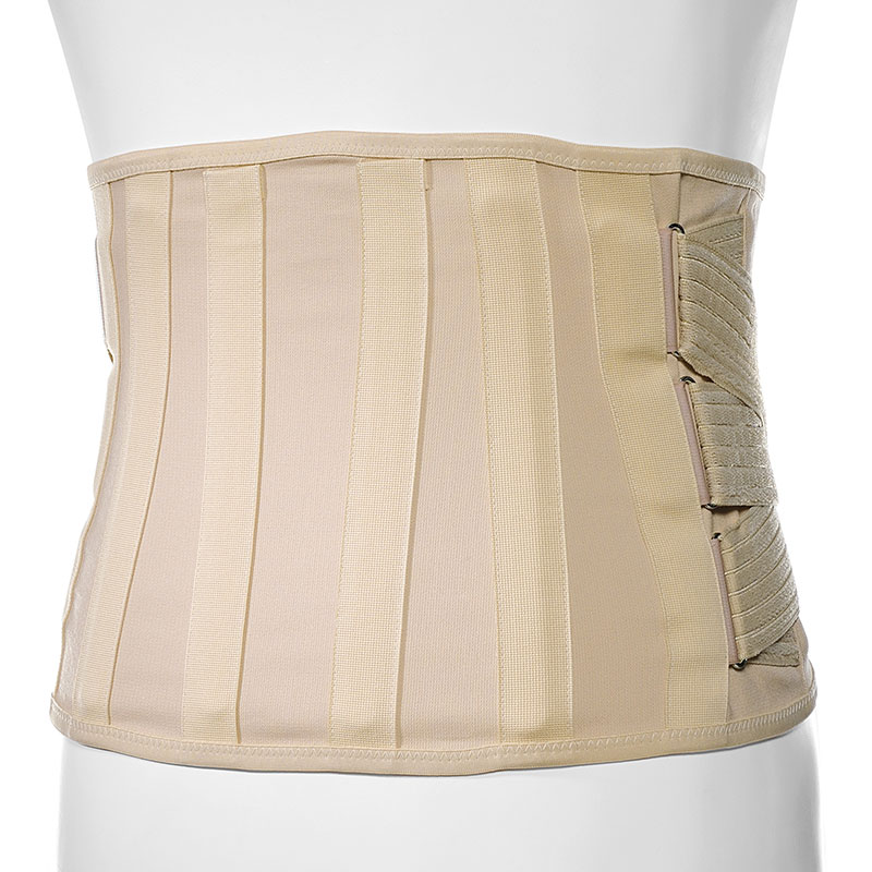 Tutore tronco per ernia del disco lombo-sacrale, artrosi lombare, lombalgia, decorso post-operatorio, traumi lombari, fratture, cedimenti vertebrali. CARATTERISTICHE TECNICHE Altezze retro cm 26 e davanti cm 18, tessuto in cotone elasticizzato Gardenia. Tiranti in bendaggio elastico, microgrip double-face. Steccatura quattro 1505 cm 22 retro e quattro 1304 cm 18-20 fianco, chiusura a velcro. COLORE nudo. ➤ Particolarità • Leggero in tessuto di cotone elasticizzato. • Tirante lombare regolabile che scorre su fibbie per una perfetta regolazione.