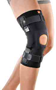 Ortesi per ginocchio con aste articolate e stabilizzatore rotuleo. Dispositivo medico marchiato CE. Indicata per gonartrosi o postumi dei traumi distorsivi con residua instabilità dei collaterali . Efficace contro lievi instabilità latero-mediale della rotula. Questo tipo di ortesi consente buona flessibilità di movimento adattandosi ottimalmente all'articolazione. Dotata di foro rotuleo con stabilizzatore in materiale espanso.