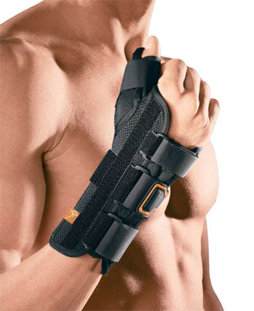 Ortesi per polso con presa pollice indicata per le seguenti patologie: • Distorsioni del polso • Tendiniti del polso • Patologie artrosiche e artritiche • Postumi delle fratture di polso o dopo rimozione precoce del gesso • Artrosi dell’articolazione trapezio-metacarpale e metacarpofalangea del pollice • Lesione della fascia ulnare dell’articolazione metacarpofalangea del pollice Caratteristiche del tutore: • Stecca rigida in alluminio per pollice, preformata e modellabile (rimovibile) • Stecca rigida palmare in alluminio, preformata e modellabile (rimovibile) • Struttura in tessuto traspirante 3D • Stecche di rinforzo dorsali • Chiusura con fibbie e cinghie a Velcro®