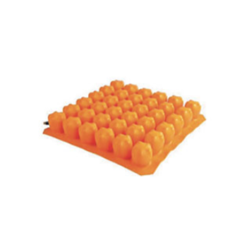 Cuscino a celle d' aria a microscambio adatto per pazienti geriatrici inattivi a medio rischio di sviluppare piaghe da decubito. Cuscino a celle d' aria a singola camera di gonfiaggio, in materiale altamente resistente alle forze di trazione e/o stiramento. Ogni cella è indipendente dalle altre dal punto di vista del movimento, il che permette un perfetto adattamento del supporto alla morfologia del paziente. L'architettura a celle consente di aumentare la superficie di contatto riducendo i picchi di pressione nella zona del sacro. Gli ampi canali di aereazione consentono una maggiore traspirazione evitando gli effetti nocivi della macerazione. Dotato di fodera impermeabile bi-estensibile in tessuto traspirante, e base rigida antiscivolo. Completo di pompetta per il gonfiaggio dotato di manometro. Portata massima utilizzatore 120 kg, altezza 7 cm