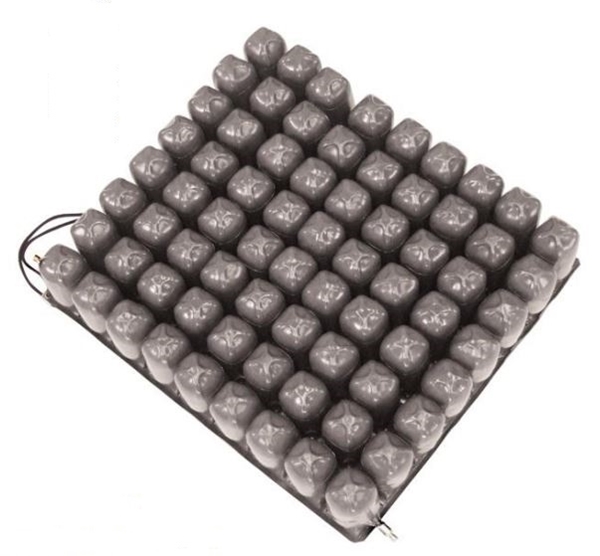 Il cuscino è composto da una struttura a celle d’aria interconnesse che permettono l'ottimale distribuzione dei carichi di appoggio, dando stabilità necessaria della seduta e contemporaneamente il massimo confort. Viene realizzato in PVC e gomma, è dotato di doppia valvola per il gonfiaggio/sgonfiaggio che consentono di dosare l'aria separatemante in due aree del cuscino, ed è disponibile in tre diverse altezze. La fodera è traspirante con base antiscivolo ed è dotata di strisce a velcro per il fissaggio sulla seduta. E' uno strumento importantissimo per la prevenzione e la cura del decubito per pazienti che stanno in posizione seduta per lunghi periodi nell’arco della giornata. La confezione contiene due fodere traspiranti con base antiscivolo, una pompa di gonfiaggio e un kit di riparazione. Le misure sono riferite a larghezza, profondità e altezza del cuscino.
