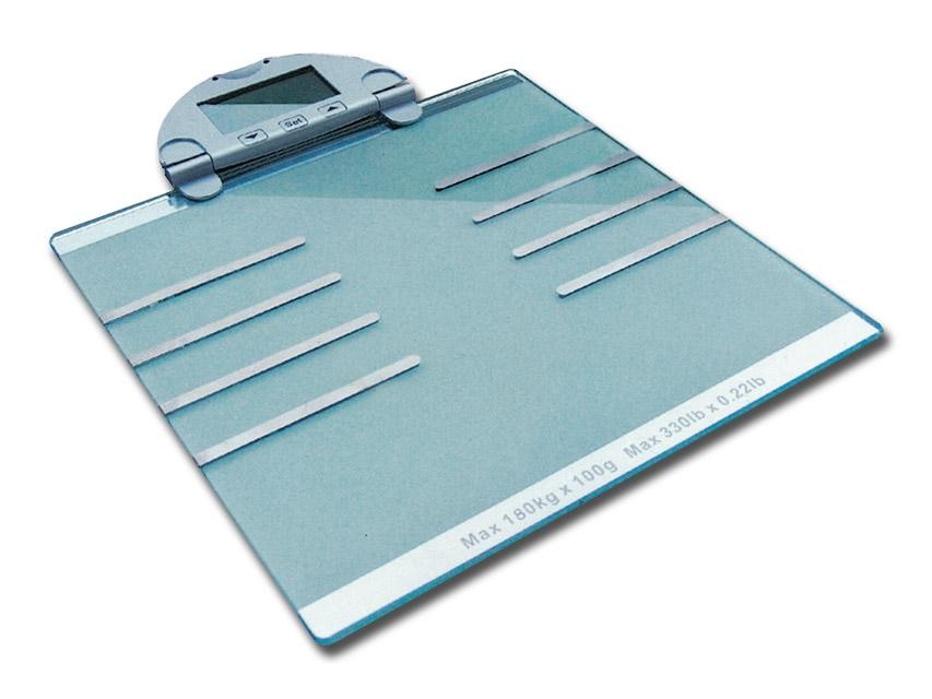 Bilancia ultra sottile in vetro con finiture argentate, design sobrio e raffinato. L'altezza complessiva è di soli 18 mm a garanzia di una stabilità eccellente. Spegnimento automatico non appena l'utente scende dalla bilancia. Dimensioni del piatto 300x300x6 mm, alimentazione a batteria, precisione 100g, portata massima utilizzatore 150 kg.