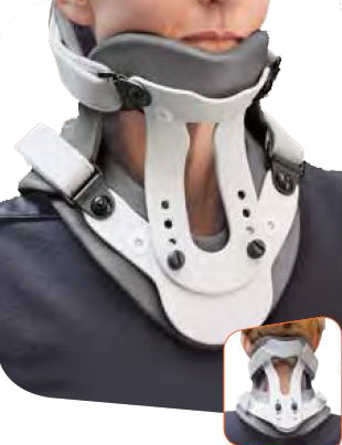 Ortesi cervicale bivalve indicata per • Distorsioni della colonna cervicale da severe a gravi (colpo di frusta) • Discopatie multiple della colonna cervicale • Traumi cervicali • Cedimenti patologici secondari a metastasi cervicali • Utile nel post-operatorio della chirurgia vertebrale. Caratteristiche del tutore: • Struttura in materiale plastico KYDEX® • Imbottitura di rivestimento in PLASTAZOTE® • Cinturini con regolazione a Velcro® • Viti con manopolina con possibilità di regolazione anche a mano • Foro tracheale • Radiotrasparente • Anatomico