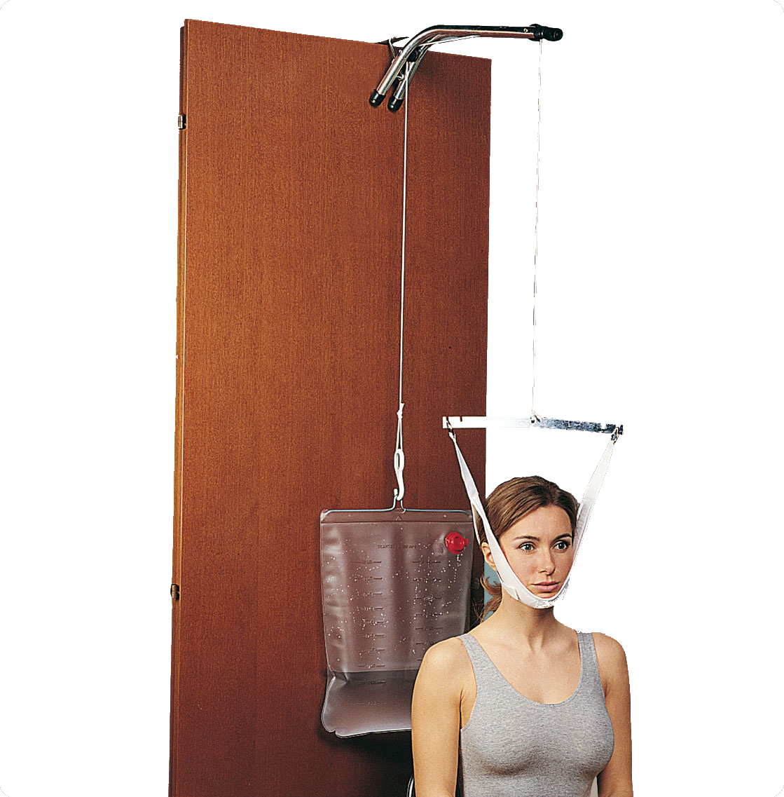 Ortesi cervicale ideale per le seguenti patologie: • Artrosi cervicale • Rettilineizzazione della fisiologica lordosi cervicale • Discopatie cervicali • Cervicobrachialgia • Riduzione d’ampiezza degli spazi intervertebrali Struttura composta da: • Carrucola con attacco a porta • Mentoniera, universale, bianco • Archetto per attacco mentoniera, universale, argento • Sacca ad acqua, universale, Capienza max 9 kg (solo PR5-3020) • Cordoncino in nylon • Gancio