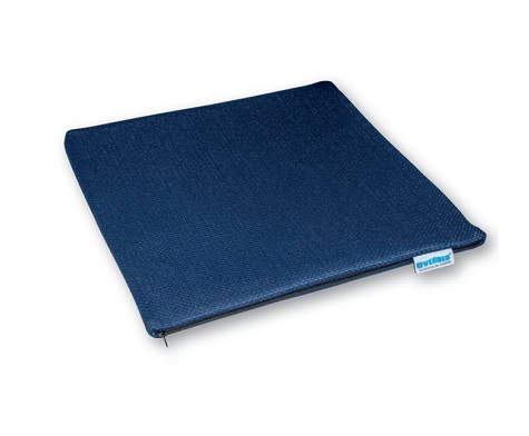 Cuscino antidecubito in gel di poliuretano. Particolarmente indicato per la prevenzione di piaghe da decubito in soggetti costretti su carrozzina a rotelle e per chi soffre di dolori nella regione sacrale. La fodera con cerniera è in tessuto “IGNIDRY”, impermeabile, ignifugo. Dimensioni in cm: 40x40x1,8 2,5 Kg;
