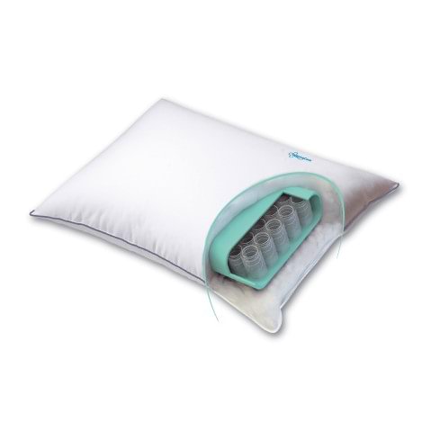 Il cuscino ErgoSpring è composto da un materiale in fibra di poliestere cardata in falda per garantire morbidezza e idonea sofficità. Al suo interno si trovano le molle indipendenti rivestite singolarmente che forniscono un adeguato sostegno differenziato e un alto livello di adattabilità ai movimenti durante l’uso del guanciale. Le molle garantiscono un ricambio dell’aria, ad ogni movimento della testa, eliminando calore e umidità in eccesso. Questo guanciale è costruito con materiali anallergici e, grazie all’impiego delle molle al suo interno, rimane sempre nella sua forma originale senza perdere spessore, mantenendo così il corretto allineamento testa-collo con la colonna vertebrale