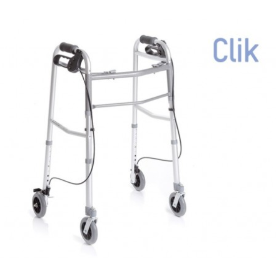 Le 4 ruote da 12 cm offrono una buona manovrabilità, mentre i freni manuali a leva permettono di controllare in modo sicuro la velocità e arrestare il deambulatore in qualsiasi momento.