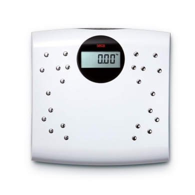 Bilancia pesa persone elettronica da terra con funzioni avanzate LifeMed SECA 804 Bilancia da terra alimentata a batterie con 24 elettrodi cromati per misurazioni precise. Il numero eccezionalmente elevato degli elettrodi mostra quello che può fare questa bilancia: oltre al peso, misura il grasso (BF) e l'acqua corporei (BW) ed inoltre calcola il BMI. Riconosce automaticamente ogni utilizzatore dopo l’inserimento di età, altezza, sesso e relativo livello di fitness. Bi...