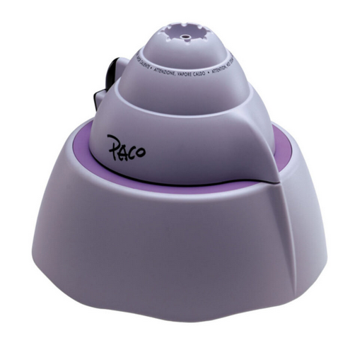Paco è un umidificatore a caldo che produce un vapore pulito e privo di germi. E' dotato di un doppio serbatoio isolante ed ha un dispositivo di sicurezza brevettato. E' possibile regolare l'uscita del vapore. Ha una capacità di 2 litri che garantiscono un'autonomia fino a 8 ore. Adatto ad ambienti fino a 60 m². Ha in dotazione un indicatore del livello di acqua residua, è dotato di un meccanismo per l'autospegnimento e di vaschetta per le essenze...