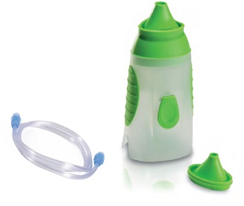Progettata per effettuare il lavaggio ed il trattamento delle cavità nasali sia con soluzione salina che con farmaci ad uso aerosolico, favorendo la fluidificazione delle secrezioni nasali.