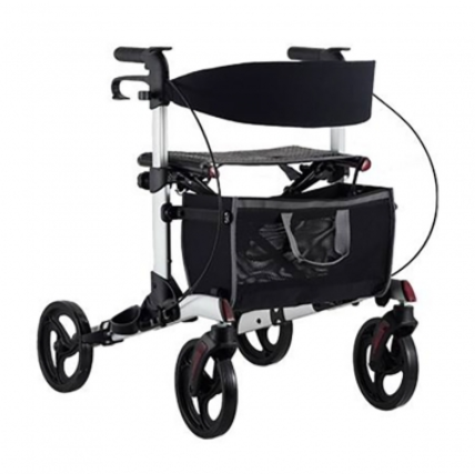 È presente una seduta e schienale in tela per consentire pause durante la camminata, oltre ad un supporto portabastone ed un ampio cestino portaoggetti utile per trasportare tutto ciò che serve.