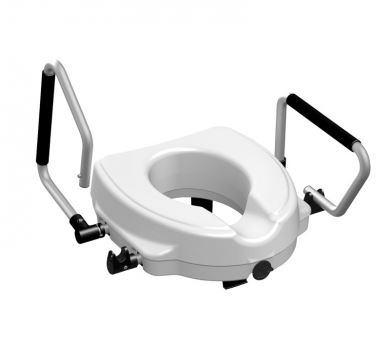 Alza WC Universale con vite centrale di fissaggio senza fori e braccioli ribaltabili, aiuta ad aumentare l’altezza del water di 12,5 cm.