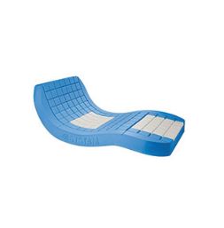 Polymulti visco è un materasso in schiuma di poliuretano espanso ad alta resilienza e alta densità (40 Kg/m3)e a lenta memoria con zone a capacità differenziata di distribuzione del peso in corrispondenza della zona sacrale e dei talloni che sono le due aree più a rischio di decubiti. L' inserto bianco in viscoelastico ad alta densità (80 kg/m3) e bassa pressione di contatto permette di scaricare la pressione nelle aree a maggior rischio di lesioni da decubito. La forma superiore a blocchi separati facilita la ventilazione nelle aree di contatto mantenendo la temperatura corporea costante