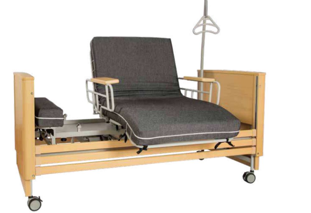 Dotato di una rete elettrica regolabile in altezza, schienale regolabile,sponde laterali abbassabili su entrambi i lati, 4 ruote con freno, triangolo alzamalati, braccioli removibili, telecomando.